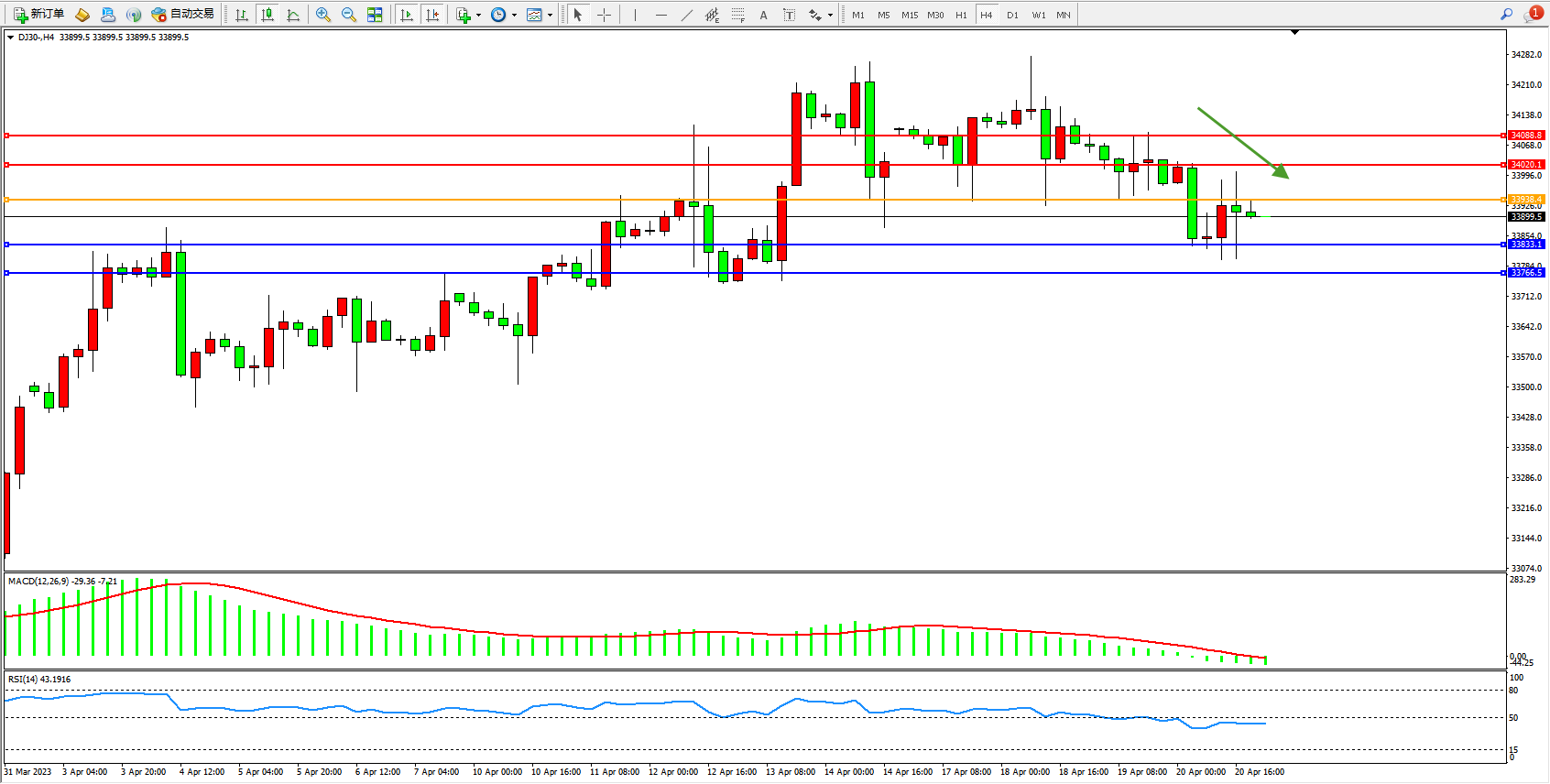 道琼斯指数4月20日(周四)收盘下跌108.74点,跌幅0.32%,报33788.27点;上周美国初请失业金人数预计会小幅上升,事实也确实如此,达到24.5万。这与2022年1月以来的最高水平基本一致。续请失业金人数继续上升,为2021年12月以来的最高水平。