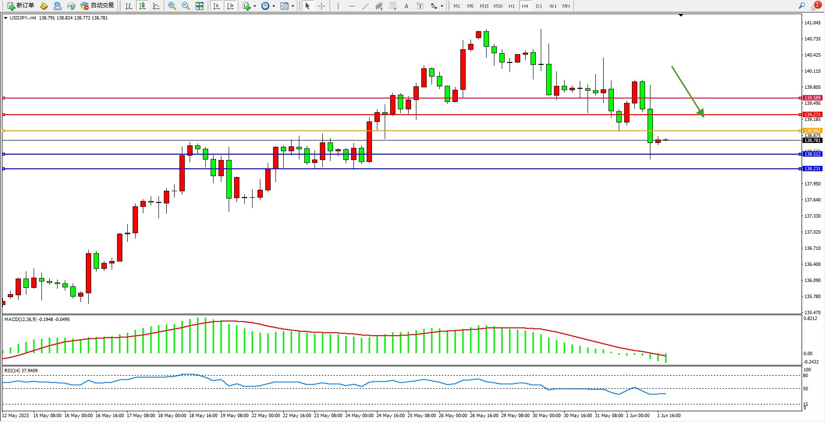 美元兑日圆维持138.781附近震荡,市场越来越多地指望美联储在6月进一步加息,那么美元兑日圆目前可能会继续受到支撑。未来几周,日本官员可能会采取更严厉的语气。
