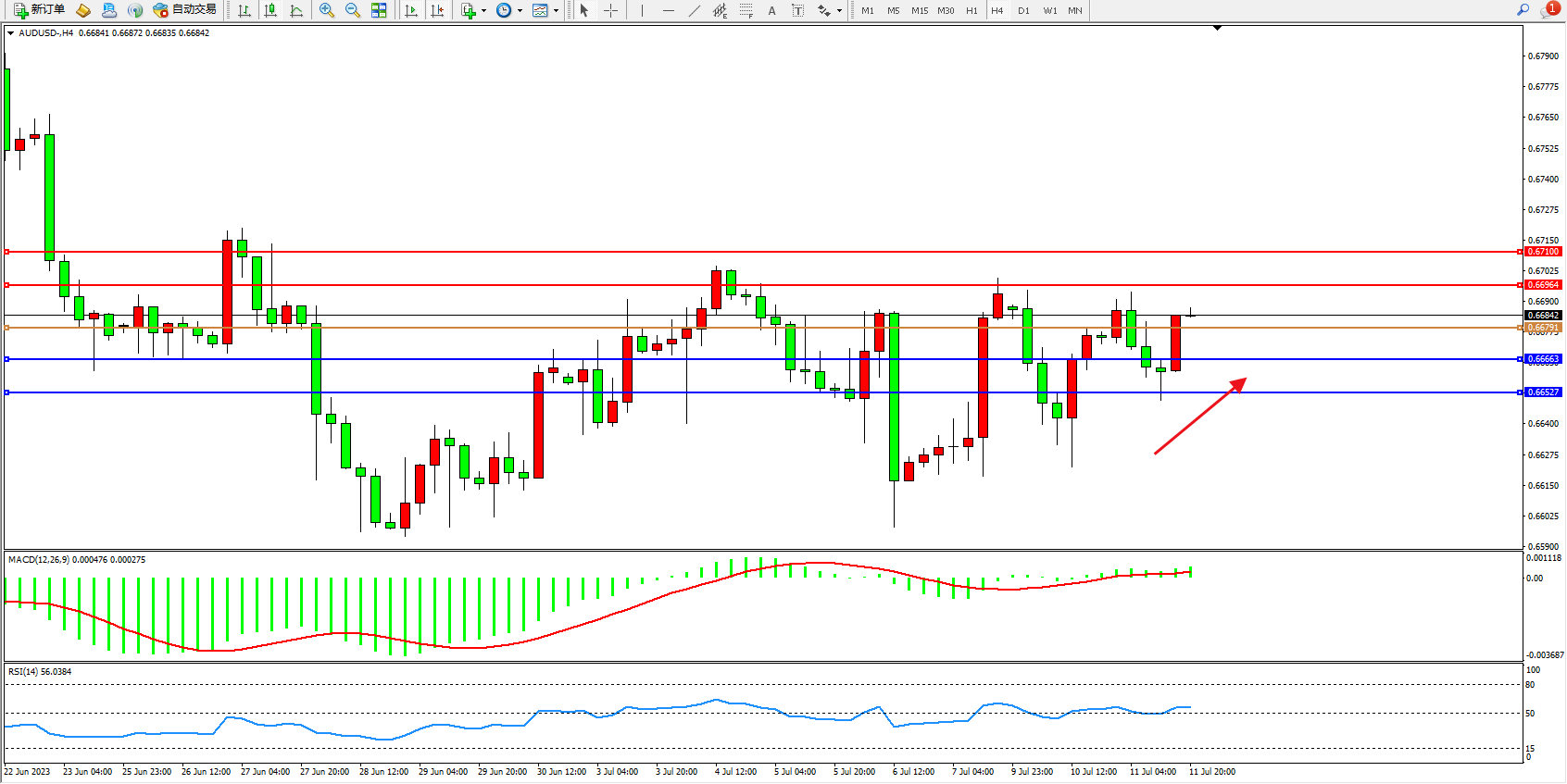 交易策略:0.66791上方看涨,目标0.66964 0.67100