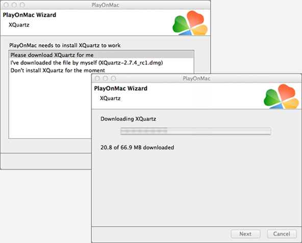 - PlayOnMac 首次启动窗口就会出现。单击 "Next" (下一步)后,安装程序就会开始检查,并安装工作所需的各种组件。